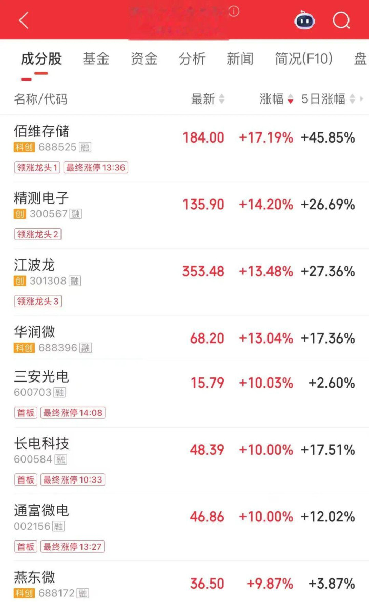 存储芯片板块表现强势,金太阳“20CM”涨停,兆易创新、通富微电涨停,佰维存储、江波龙等大涨。13:25左右,盈新发展直线拉升,不到1分钟涨停,截至收盘股价报3.36元/股,最新市值为197.29亿元,涨停板上仍有38.84万手封单。